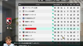 J1初年度は7位で終了。まあまあ、そう簡単には行かないわなー・・と思っていたら、あっさり次年度で優勝してしまった!でもサカつくの目標はこれじゃなく、J1で常勝クラブになるまでがまずは第一目標って感じ…で良いんですよね?何しろ最後にプレイして...