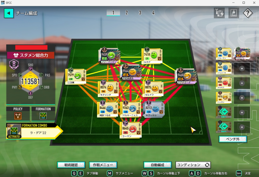 この体制で個々の総合力を上げていけば、まずJ1のレベル5は突破できそう。