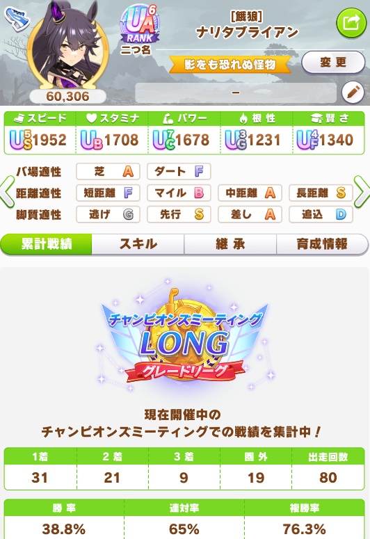 この二点によって「①理論上可能な最大値」と「②自分が持つ資産で可能な最大値」が決まり、②を目指して育成した成果物をルームマッチ等で①と比較し、自己評価による「完成度」になるんだと思います。
